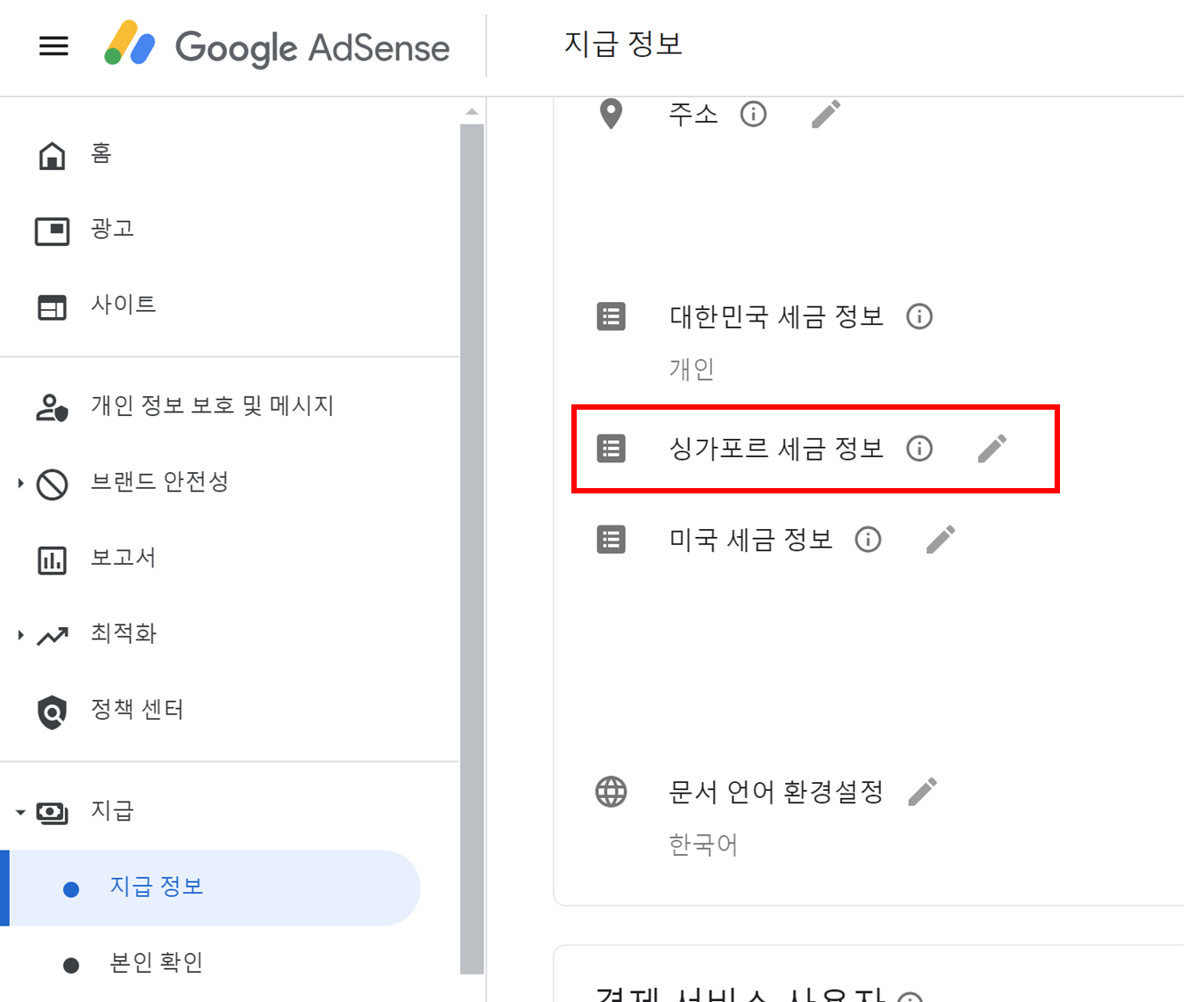 애드센스를 사용하려면 애드센스 계정에 세금 정보를 제공해야 합니다. 싱가포르의 규정에 따른 것으로, 광고 수익을 세금 신고 및 과세 목적으로 추적하기 위함입니다. 세금 정보를 입력함으로써, 싱가포르 세금 당국이 필요한 경우 해당 정보를 사용하여 세금을 징수하거나 세금 상태를 파악할 수 있습니다. 티스토리는 이러한 정보를 요구하여 애드센스 수익을 정확하게 처리하고 세금을 납부할 수 있도록 도와줍니다.